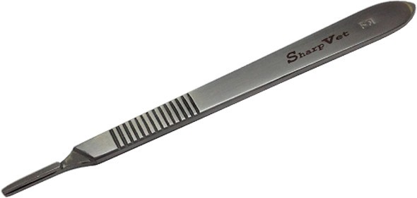 Stainless steel scalpel handle. Fits blades # 10, 11, 12, and 15